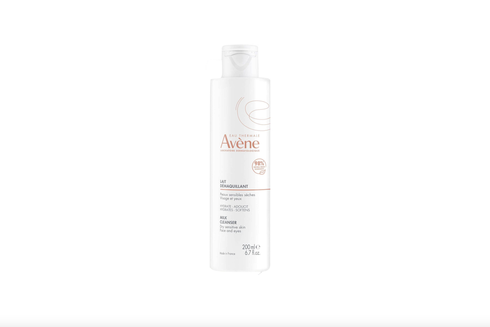 Una formula composta per il 98% da ingredienti di origine naturale, senza ingredienti di origine animale, idrata, protegge, riduce le sensazioni di disagio e che tira e rimuove il trucco. Detergente, struccante, idratante, lenitivo.